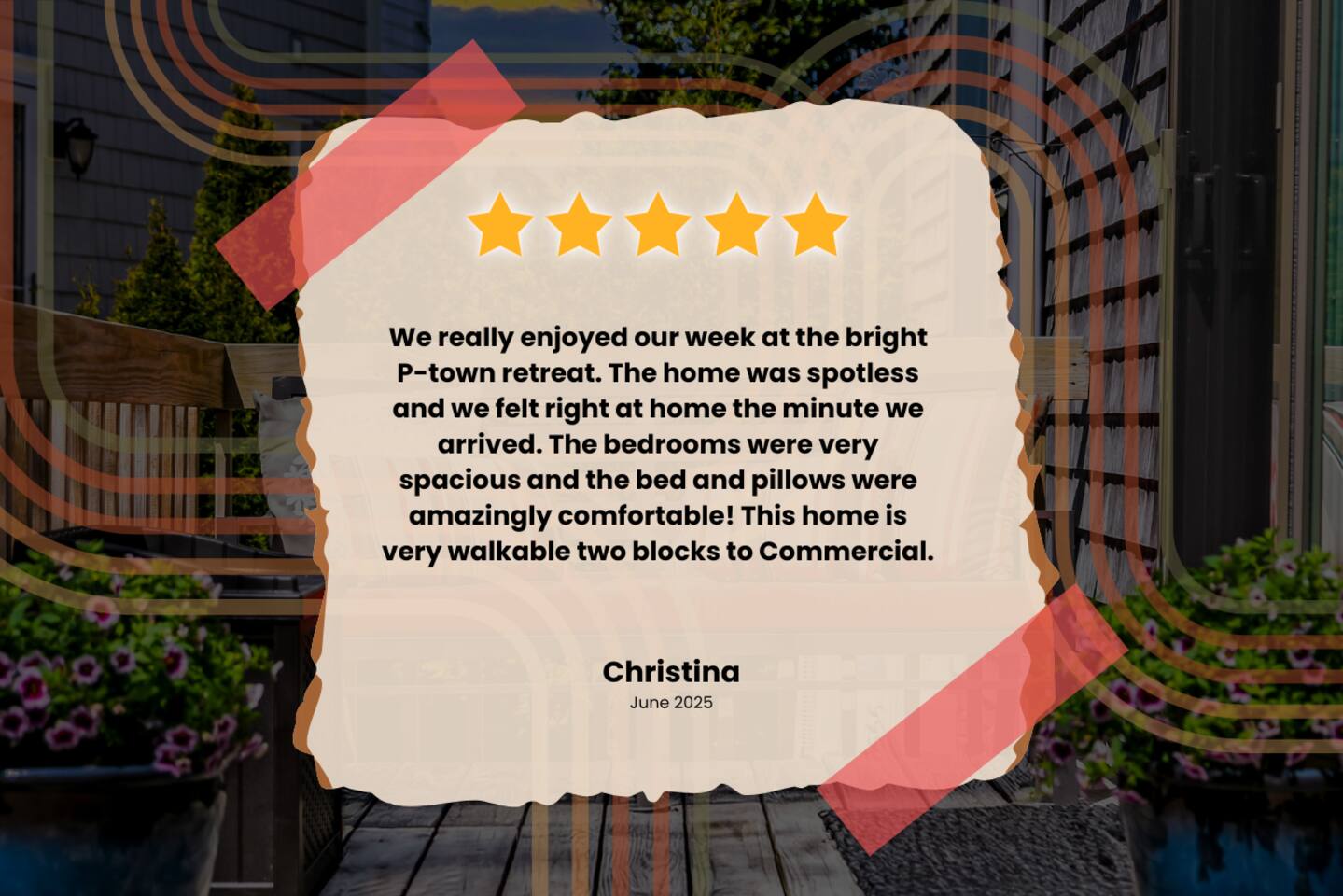 We take great pride in accurately describing our home so you know what you will be renting. We realize that every group of guests has specific rental requirements, and what one group might love could pose a challenge for others. Being part of a residential community in Provincetown with shared outdoor spaces and yards near our private outdoor area, it's important to be mindful of noise levels to ensure a harmonious experience for all residents. Please be aware that noise might travel among the homes in our development, and it’s difficult for us to control any noise from our neighbors. Most of the time when we’re there, we hear nothing. The Ultimate Peace of Mind for Our Guests with Waivo: Your booking includes a built-in damage waiver (up to $3,000), meaning no security deposit required. If an accident happens, you're covered. Details can be found in the house rules you'll receive before arrival. We look forward to hosting you—your delightful stay in Provincetown awaits!