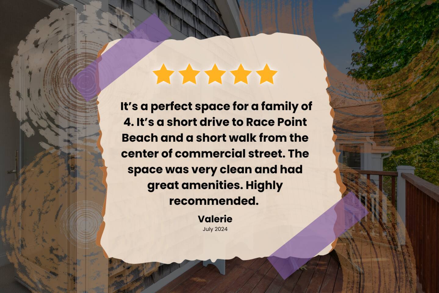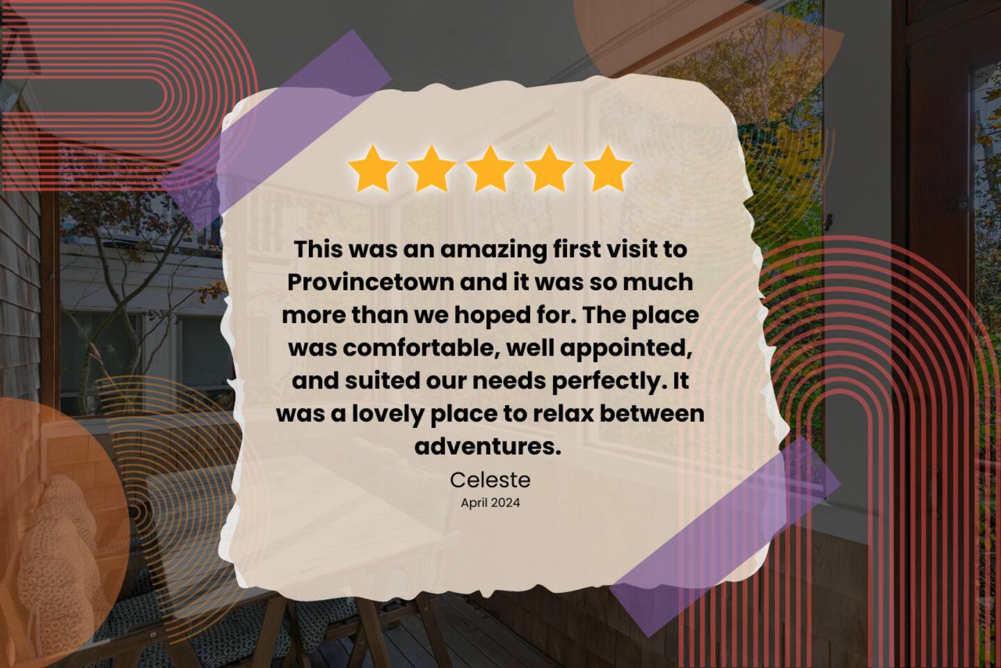 Guest Access Your comfort and convenience are our top priorities! Enjoy exclusive access to all areas of the house, including the well-appointed open-concept kitchen, dining, and living spaces, as well as the tranquil outdoor areas. We have three locked closets for supplies and the owner's belongings. Whether you're relaxing indoors or spending time outside, our entire home is yours to enjoy during your stay. Step outside and unwind on the upstairs terrace, a perfect spot to relax and take in the surroundings. No matter where your adventures in Provincetown take you, you can always return to the comfort and tranquility of our home. The Ultimate Peace of Mind for Our Guests with Waivo Instead of charging a separate security deposit like many hosts do, our rental rates already include a damage waiver fee that covers up to $3,000 for damage to real or personal property as a result of your acts or omissions. To learn more about how the damage waiver works, please see our house rules in the interactive guide that you will receive prior to your arrival. Relax and enjoy your stay with peace of mind, knowing that if an accident happens and damage occurs, you are protected under Waivo.