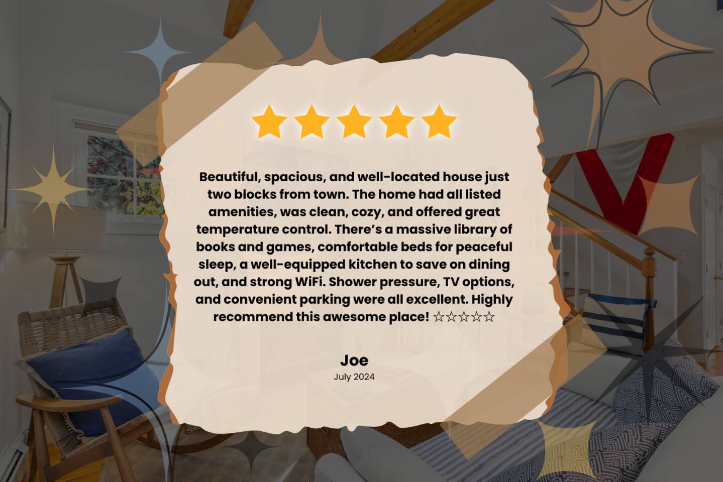 ✨ PROPERTY HIGHLIGHTS ✨ Nestled in the heart of Provincetown, our thoughtfully curated home offers everything you need for a relaxing stay. Step inside and discover a beautifully decorated space that combines comfort with contemporary flair. Key Features: ★ 2 Spacious Bedrooms – Sleep peacefully in our well-appointed rooms. ★ 2 Bathrooms – Enjoy the convenience of multiple bathrooms for no waiting in the morning! ★ Fully Equipped Kitchen – Cook up your favorite meals with ease. ★ Inviting Living Area – Relax in style with comfortable seating and modern decor. ★ Screened Porch and Second-Floor Deck – Sip your morning coffee or enjoy evening cocktails in these two private outdoor spaces. ★ AC and WiFi – Stay comfortable and connected throughout your stay. ★ Dedicated Workspace – Scurry away to the desk downstairs if you're working from home. ★ Convenient Parking for 2 Cars! – No need to pay for parking in a Town lot. Walk to the ferry and center of town from this freestanding, 1,350-square-foot home, tucked away just off Commercial Street, next to the Pilgrim Monument. Our classic, Cape Cod-style home - built in 2005 and tastefully updated since has been featured in Afar Magazine as one of the top Airbnb listings on Cape Cod. ✨ THE SPACE ✨ This modern retreat is designed to provide both luxury and convenience. From the spacious layout to the chic decor, every detail has been thoughtfully crafted for your enjoyment. Built in the early 2000s and located in a serene neighborhood, our home offers a perfect blend of tranquility and proximity to the bustling town center. ✨ BEDROOMS ✨ Primary Bedroom: Located on the second floor, this serene space features a queen-sized bed, ample storage, and an en suite bathroom for your privacy. Second Bedroom: Located on the main level, this stylishly decorated room includes a King-sized bed (that can be set up as 2 twin beds) and easy access to a full bathroom. ✨ BATHROOMS ✨ En Suite Bathroom: Features modern fixtures and a spacious design for a luxurious experience. Second Bathroom: Includes contemporary amenities for your comfort. ✨ LIVING AREA ✨ The heart of our home features an open-concept living and dining area bathed in natural light, perfect for a relaxing night in or unwinding after a day of adventure. Enjoy entertainment with the TV, cable, Apple TV, and DVD player, adding extra comfort to your stay. ✨ OUTDOOR SPACE ✨ Enjoy access to the screened porch, a peaceful space ideal for relaxing with a good book or enjoying meals outdoors. Our private outdoor area features seating options and a grill, making it perfect for small summer gatherings. Additionally, the second-floor deck off the upstairs bedroom offers a great spot to relax and enjoy the fresh air. ✨ LOCATION HIGHLIGHTS ✨ You're right in the heart of it all, with many attractions just a short walk away: 7-minute walk to the Pilgrim Monument 8-minute walk to Crown + Anchor 8-minute walk to Jerome Smith Pickleball Courts 8-minute walk to Provincetown Bike Rentals (136 Bradford) 9-minute walk to Pepe’s Wharf 9-minute walk to the ferry – easily access transportation to explore the region! 11-minute walk to Spiritus Pizza 13-minute walk to Tea Dance at Boatslip Whether you’re looking to explore the artistic scene, indulge in local cuisine, or simply relax by the beach, our property is perfectly located to enjoy the best of Provincetown. ✨ BOOK YOUR STAY TODAY! ✨ Don’t miss the opportunity to enjoy the ultimate Provincetown getaway. With modern amenities, serene outdoor spaces, and a fantastic location, our home is ready to host you. Book now and prepare for a memorable escape in this coastal paradise! ✮ PARKING INFORMATION ✮ There are two reserved parking spots included with the house, both located immediately in front of the house, starting on the brick drive and extending back on the white shell driveway. Please do not park in the numbered spots in the lower part of the lot along Alden Street, as these spots belong to other units. If you need additional parking, there is a lot next to CVS at the intersection of Bradford and Prince streets (an easy walk from here).