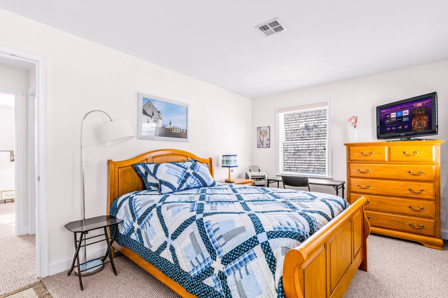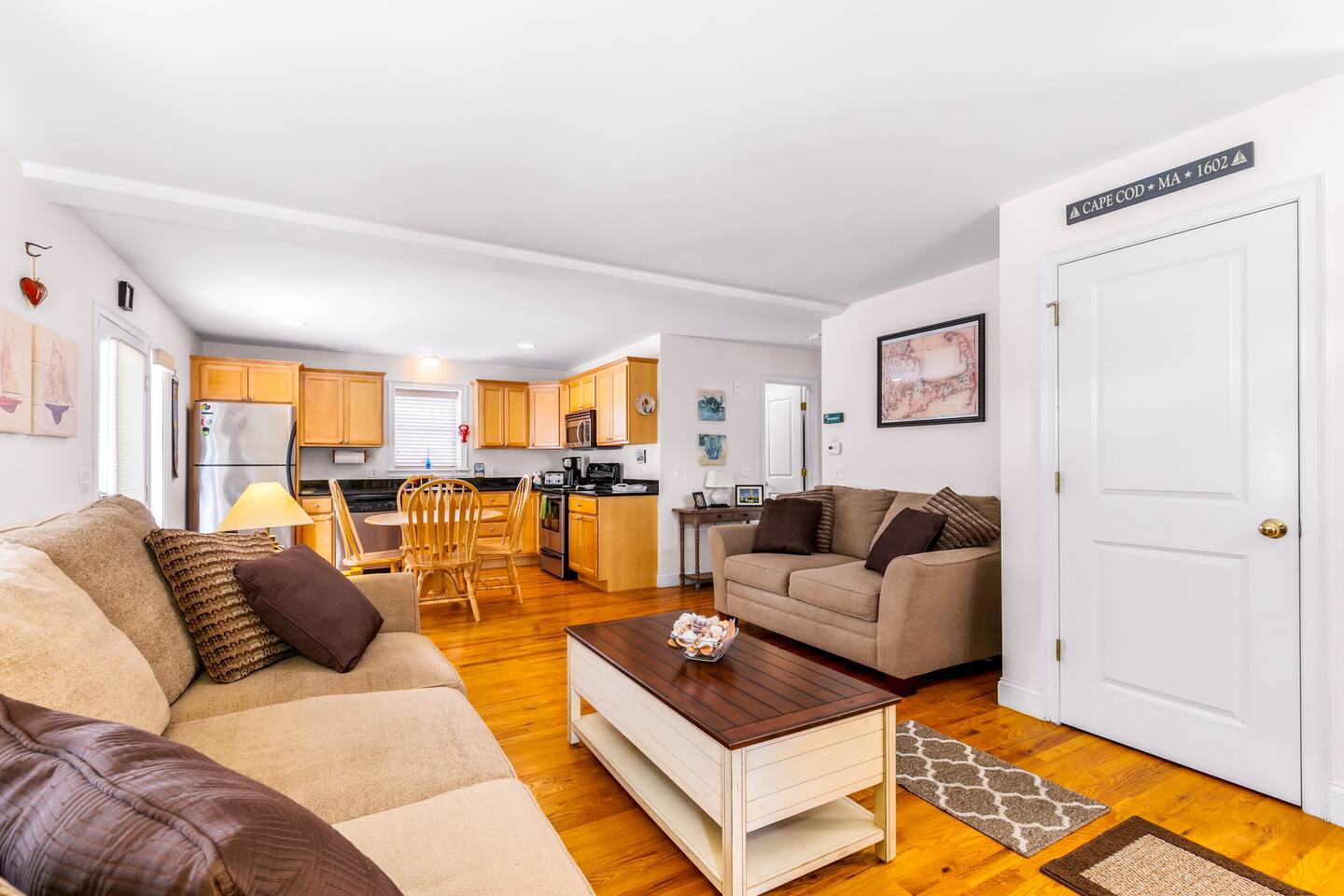 ☀ Sleeps 4 comfortably ☀ 2 Bedrooms with queen beds ☀ 2 Full Bathrooms (1 with tub/shower combo) ☀ Full Kitchen (stove, microwave, toaster, coffee machine) ☀ High-speed internet ☀ Living area with 2 sofas ☀ Washer & dryer in basement ☀ Front & back entrances ☀ One dedicated parking space ⸻ ☆☆ LOCATION HIGHLIGHTS ☆☆ ✮ Race Point Beach – Famous for sunsets, sand dunes, and wildlife, just a short drive away. ✮ Province Lands Bike Trail – Scenic biking and walking trails nearby. ✮ Commercial Street – 5-7 minute drive to shopping, galleries, dining, and nightlife. ✮ Pilgrim Monument + Provincetown Museum – Iconic landmark and local history. ✮ Whale Watching Tours – Depart from Provincetown Harbor with easy access. ✮ Local Dining + Cafés – From casual bites to fine dining along the harbor. ✮ Art Galleries + Studios – Provincetown’s renowned creative scene close by. ✮ Cape Cod National Seashore - Nature trails and quiet coastal escapes. ⸻ ☆☆ BEDROOMS ☆☆ First Bedroom – A peaceful second-floor space with a queen bed and TV, creating a calm retreat after a full day exploring the Cape. Ample closet space keeps your stay organized and clutter-free. Convenient access to the upstairs full bathroom. Second Bedroom – Also located on the second floor, this inviting room features a queen bed, TV, work desk, and closet — ideal for remote work in the morning and restful sleep at night. ⸻ ☆☆ BATHROOMS ☆☆ You’ll enjoy two full bathrooms: • First-floor bathroom with a walk-in shower - great for quick refreshes after beach days. • Second-floor bathroom with both a tub and shower - perfect for relaxing soaks. All bathrooms are fully stocked with body wash, shampoo, conditioner, and essential toiletries to make your stay easy and comfortable. ⸻ ☆☆ KITCHEN + RELAXING AREAS ☆☆ The fully equipped kitchen includes a stove, microwave, toaster, and coffee machine - ready for casual breakfasts or home-cooked dinners. The adjacent living room features two comfortable sofas, creating an inviting space for movie nights, morning coffee, or simply unwinding together. A separate basement houses the washer and dryer for added convenience, especially during longer stays. ⸻ ☆☆ OUTSIDE SPACE ☆☆ Enjoy the convenience of both front and back entrances - including direct access into the kitchen for easy grocery drop-offs. Step outside and breathe in the fresh Provincetown air before heading out for a day of beaches, biking, shopping, or dining. One dedicated parking space located directly in front of the home (by the large tree) makes arrivals and departures simple and stress-free - a valuable perk in Provincetown. ⸻ ★☆ Book Today & Let Us Take Care Of You ☆★ Whether you’re planning a peaceful coastal escape or a week filled with Cape Cod adventure, this comfortable Provincetown home offers the space, convenience, and location to make it unforgettable. Reserve your dates now and start counting down to your getaway. ☆★ PARKING ☆★ One dedicated parking space is located directly in front of the home (by the large tree), making arrivals and departures simple and stress-free — a valuable perk in Provincetown. If you’re traveling with more than one vehicle, there is additional first-come, first-served parking directly across the entrance to the 60 Race Point Rd development. While not guaranteed, guests with a second car are often able to park there if the deeded space is already in use. Additional public parking is also available at the MacMillan Pier Town Lot, as well as various privately owned lots along Bradford Street. There are also numbered public parking spaces along Commercial Street (fees apply when in effect). Please note: Metered parking is typically in effect from May through early November. Off-season parking is generally free. For a full list of public parking lots managed by the Town of Provincetown, please refer to the town’s official parking resources.