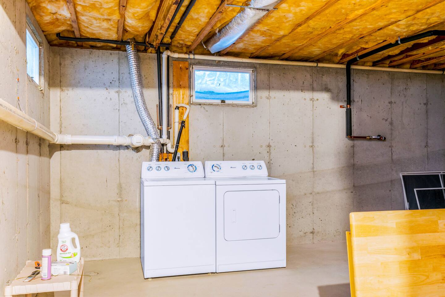 Guests have full access to the entire two-story home, including both bedrooms, two bathrooms, the fully equipped kitchen, living areas with two sofas, basement washer/dryer, and both front and back entrances. Everything is yours to enjoy for a comfortable, private stay.