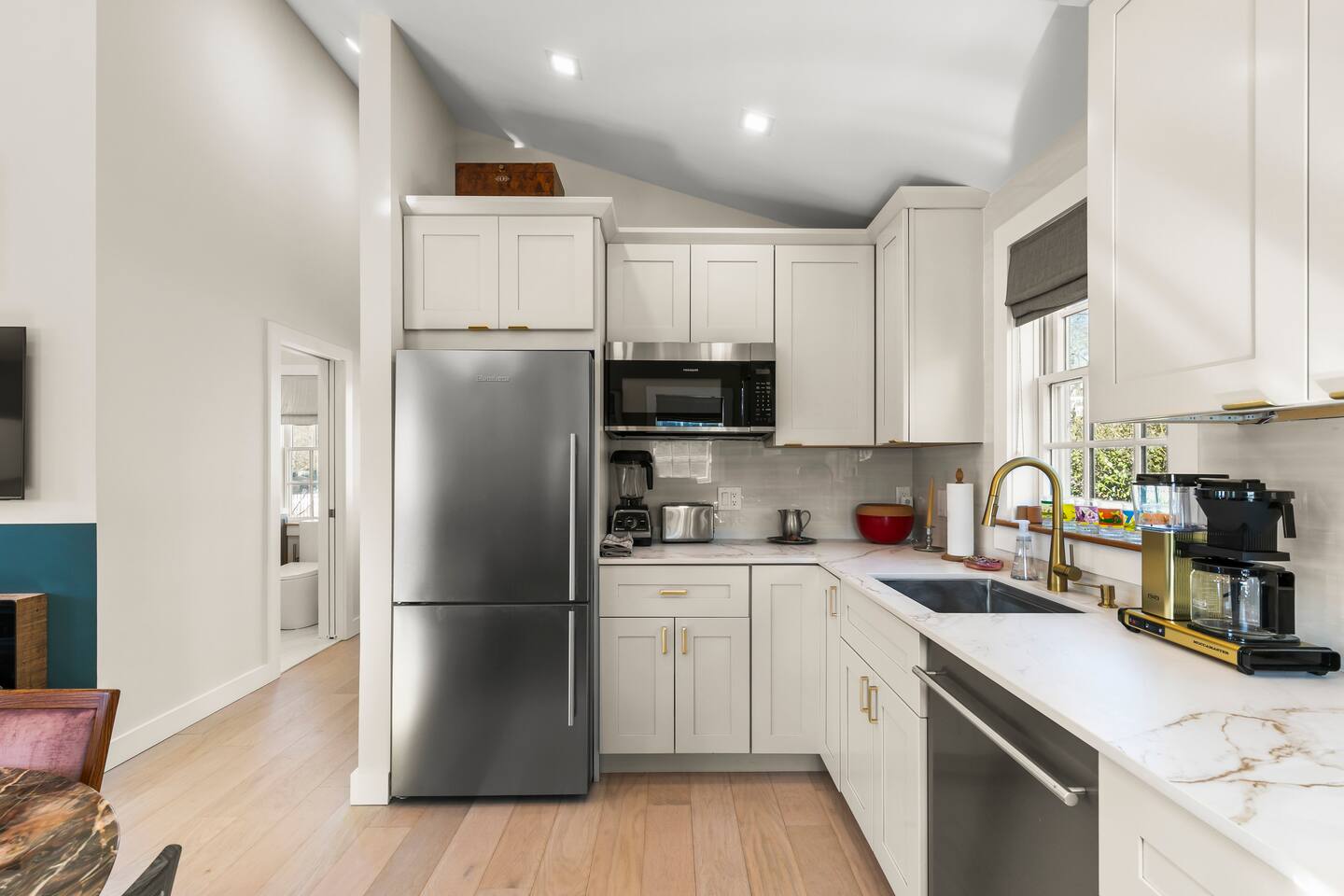 ✨ PROPERTY HIGHLIGHTS ✨ Welcome to your stylish Provincetown escape! This newly built 2BD/2BA cottage in the heart of the East End offers the perfect blend of historic charm and modern luxury—all just steps from the beach and Commercial Street’s top restaurants, art galleries, and nightlife. Inside, you’ll find high-end finishes, original artwork, and carefully curated furnishings designed for those who appreciate fine design. The open-concept living space, with vaulted ceilings and chic reclaimed wood accents, creates a warm and inviting atmosphere. The primary suite is a true retreat, featuring a spa-like bathroom with a steam shower, dual vanity, and heated floors—perfect for unwinding after a day at the beach. Book your stay in one of Provincetown’s most stunning new homes! ** This home features delicate antiques, unique artwork, and high-end décor that require thoughtful care, making it best suited for adult guests traveling without children. ** ⸻ ✨ Key Features: ★ 2 Elegant Bedrooms – Comfortable and inviting, designed for restful nights after exploring Provincetown. ★ 2 Spa-Like Bathrooms – The primary bath boasts a luxurious steam shower, dual vanity, and heated flooring for ultimate relaxation. ★ Gourmet Kitchen – Fully equipped with sleek Dekton countertops and stainless steel appliances, making meal prep a breeze. ★ Open-Concept Living Area – Vaulted ceilings, recessed and artwork lighting, and custom wrought iron railings create a spacious and stylish atmosphere. ★ Private Outdoor Space – Enjoy gatherings or quiet moments in the beautifully landscaped yard. ★ Prime Location – Steps from Commercial Street, the beach, renowned restaurants, eclectic shops, and art galleries. ★ Parking Included – Your designated off-street parking space steps from the entryway. ⸻ ✨ THE SPACE ✨ East End Escape is designed to offer sophisticated comfort and refined elegance. Whether you’re sipping morning coffee in the sun-drenched living area or unwinding in the spa-like primary bathroom, every detail has been carefully curated to enhance your stay. With museum-quality artwork, delicate furnishings, and high-end finishes throughout, this home is best suited for adult travelers who appreciate fine design. Families traveling with young children will find our home less-than-ideal due to the fragile nature of the décor and the replacement cost of anything broken, ⸻ ✨ BEDROOMS & BATHROOMS ✨ The two well-appointed bedrooms provide a peaceful retreat, while the beautifully designed bathrooms offer spa-like indulgence, complete with a steam shower and heated floors in the primary suite. ⸻ ✨ KITCHEN & DINING ✨ Cook in style with top-tier stainless steel appliances and Dekton countertops. The open layout ensures a seamless flow between the kitchen and living space, perfect for entertaining. ⸻ ✨ OUTDOOR SPACE ✨ The private fenced side yard provides an ideal space for relaxation or socializing, while the manicured front yard adds to the home’s charm. ⸻ ✨ LOCATION HIGHLIGHTS ✨ ✮ 1-Minute Walk to the Beach – Start your day with a peaceful sunrise or an evening stroll. ✮ 2-Minute Walk to Commercial Street – Explore the best of Provincetown’s dining, shopping, and entertainment. ✮ 5-Minute Walk to Berta Walker Gallery – Immerse yourself in Ptown’s renowned art scene. ✮ 7-Minute Walk to East End Market – Grab fresh coffee, pastries, and gourmet groceries. ✮ 10-Minute Walk to The Mews Restaurant + Café – Enjoy waterfront dining with a refined menu. ✮ 22-Minute Walk to MacMillan Pier – Catch a ferry, go whale watching, or take in the harbor views. ⸻ ✨ THINGS TO KNOW ✨ ✔ Not Suitable for Young Children – Due to the presence of delicate artwork, antiques, and designer furnishings, this home is best for adult guests. Families traveling with young children will find our space challenging to navigate. ✔ Smoke-free property – No smoking is permitted indoors. ✔ Air-conditioned – Equipped with efficient cooling for warm summer days. ✔ Stair Access – The home features stairs inside and leading to the entrance. ⸻ ✨ BOOK YOUR STAY TODAY! ✨ Whether you’re seeking a relaxing retreat or an adventure-filled getaway, East End Escape is the perfect Provincetown sanctuary. Reserve your stay now and experience the charm of the East End! ⸻ ✮ PARKING INFORMATION ✮ A designated parking space is included with the property. Additional parking may be available in town lots or metered spaces. Provincetown enforces metered parking from April 1st - November 3rd (8 AM - Midnight). Parking is free in town lots from November 4th - March 31st.