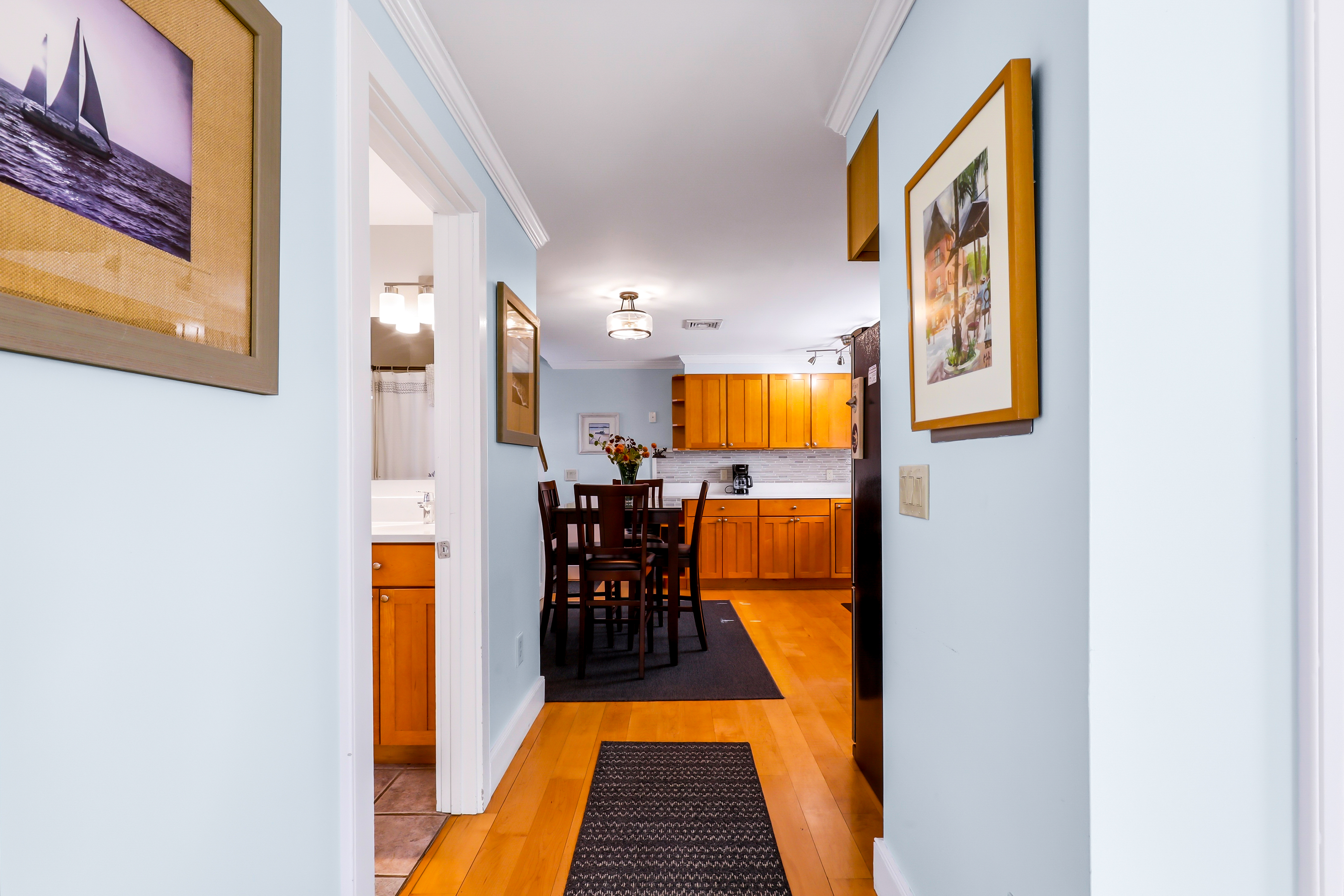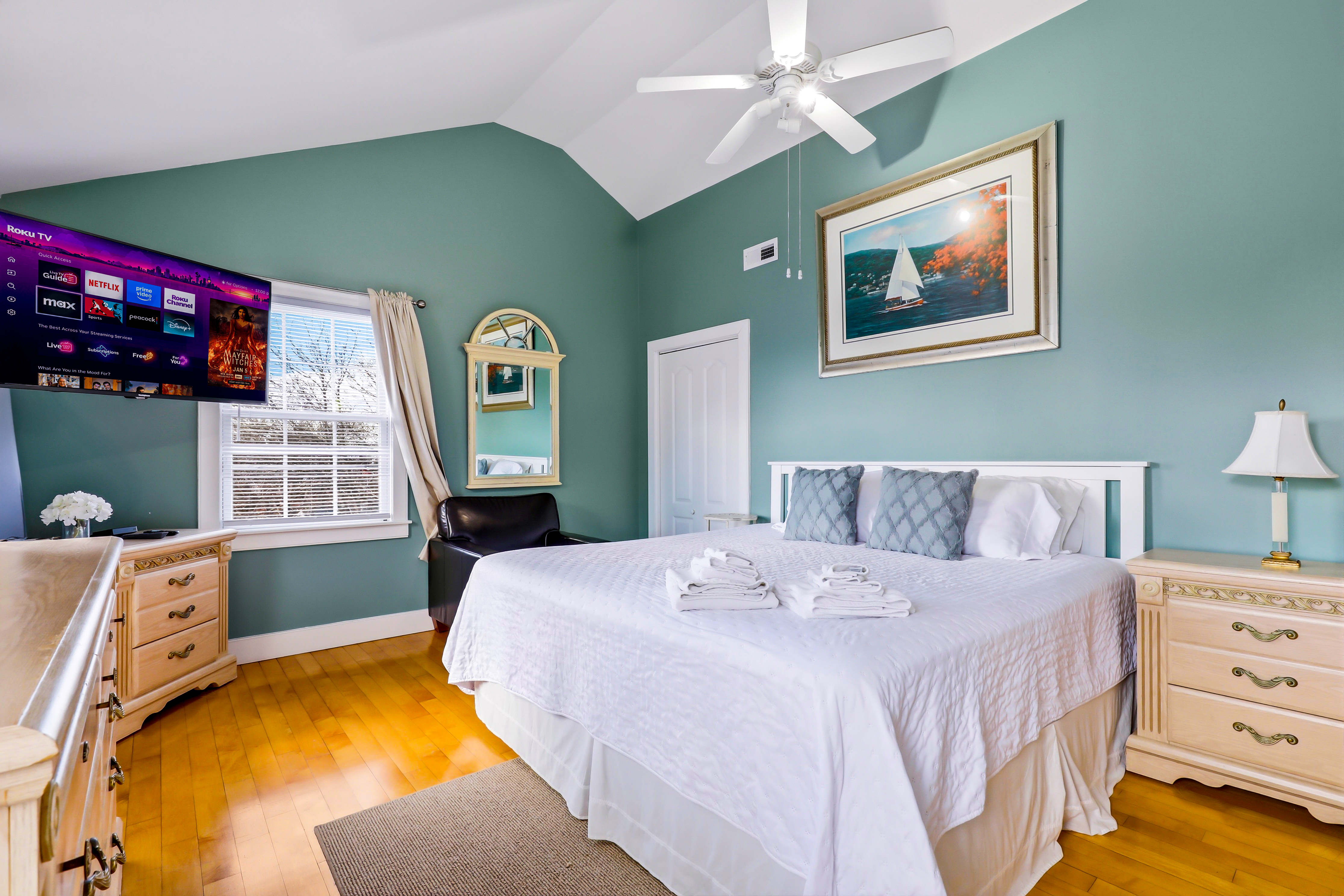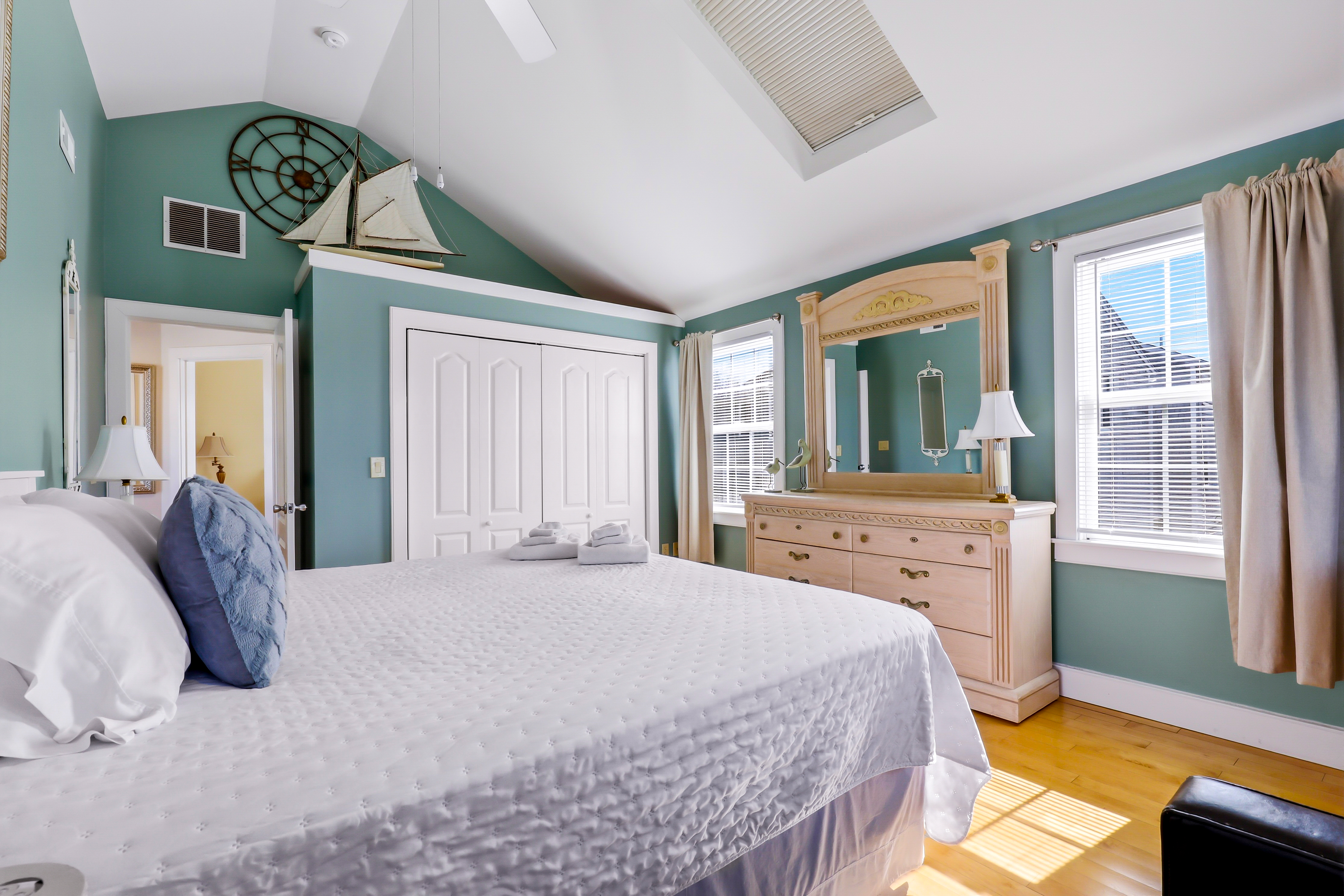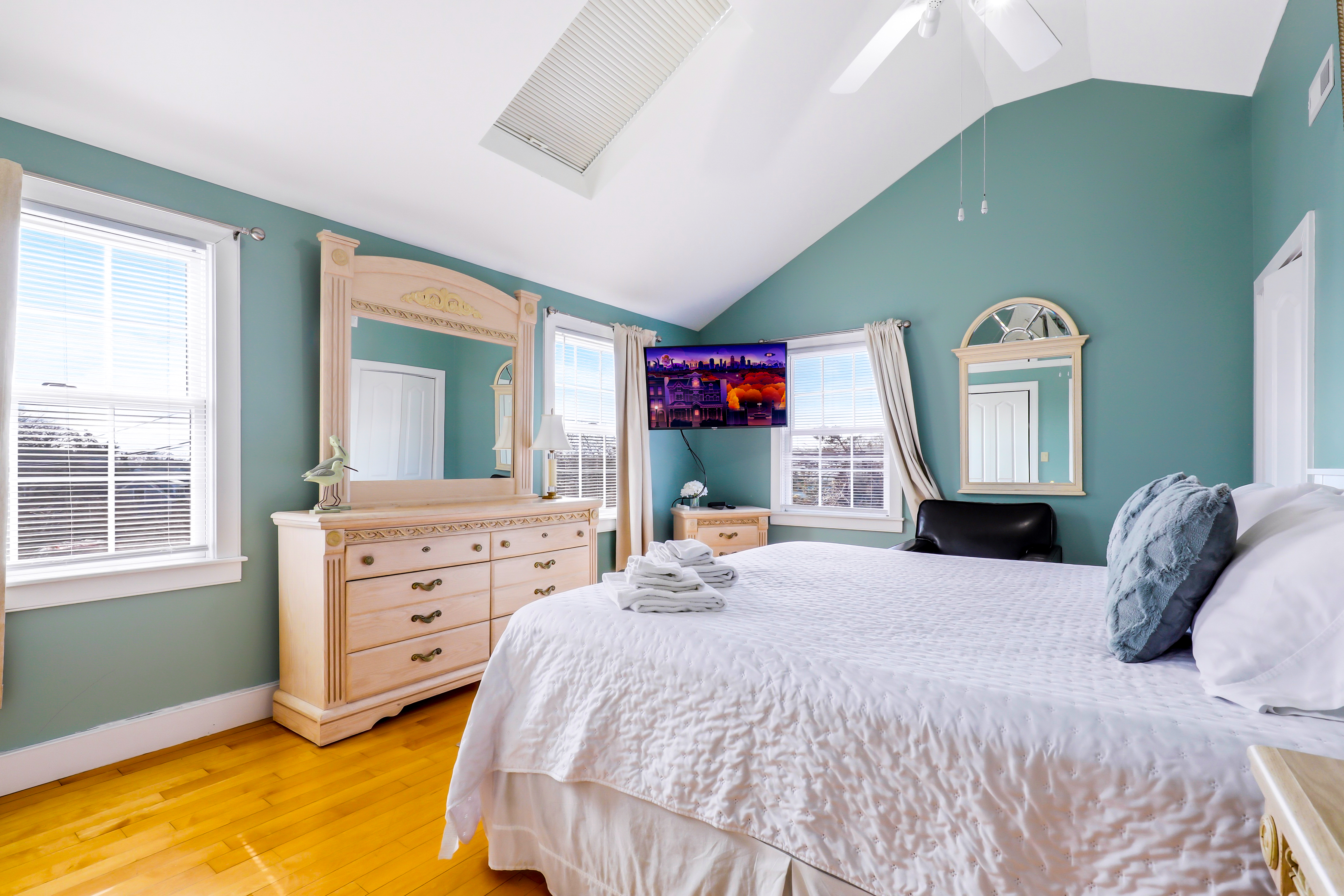 Experience the best of Provincetown from this sun-drenched, two-story luxury condo - just steps from Commercial Street and the Pier, yet tucked away for a peaceful retreat. Enjoy private outdoor spaces, a chef’s kitchen, and dedicated parking, all within walking distance to shops, dining, and the ferry. Key Features ☀ Sleeps 6 - 2 bedrooms (King + Queen) + queen sleeper sofa ☀ 2-story layout with bright skylights and hardwood floors ☀ Prime location - 5-minute walk to Commercial Street & Pepe’s Wharf ☀ Private front porch + secluded patio for relaxing outdoors ☀ Fully stocked chef’s kitchen (including lobster pot) ☀ 2 full bathrooms (main level + second floor)in-unit laundry ☀ Dedicated off-street parking (rare for this location!) ☀ Pet friendly ☀ Fresh pastries from Far Land Provisions right next door ☆☆ BEDROOMS ☆☆ Upstairs, you’ll find two serene and sunlit bedrooms designed for restful nights after a day exploring Provincetown. Skylights fill the space with natural light, while plush mattresses ensure comfort. The primary bedroom features a luxurious king-size bed, creating a true retreat. The second bedroom offers a cozy queen-size bed - perfect for guests or family. Both rooms include AC and their own TVs, giving everyone space to unwind and recharge in comfort. ☆☆ BATHROOMS ☆☆ The home includes two full bathrooms, conveniently located on the main level. It’s fully stocked with body wash, shampoo, conditioner, and all the essentials you need for a comfortable stay. ☆☆ KITCHEN & RELAXING AREAS ☆☆ The open-concept main level is designed for both relaxation and connection. The airy living room features rich hardwood floors and a comfortable setup for movie nights or winding down after a day out. The fully equipped kitchen is ready for anything - from quick breakfasts to full seafood feasts, complete with all cookware and essentials (including a lobster pot). A dining area makes it easy to gather and enjoy meals together, while in-unit laundry adds everyday convenience. ☆☆ OUTSIDE SPACE ☆☆ Enjoy the best of indoor-outdoor living with two private spaces. Sip your morning coffee on the charming front porch - or take a quick step next door to Far Land Provisions for fresh pastries and coffee - then unwind in the evening with drinks on your secluded patio. Leave the car in your dedicated parking spot and explore on foot - everything you need is just steps away. ★☆ Book Today & Let Us Take Care Of You ☆★ Whether you're here for a relaxing getaway or to explore the vibrant energy of Provincetown, this home offers the perfect balance of comfort, location, and style. Book your stay today and enjoy a seamless, memorable experience from start to finish.