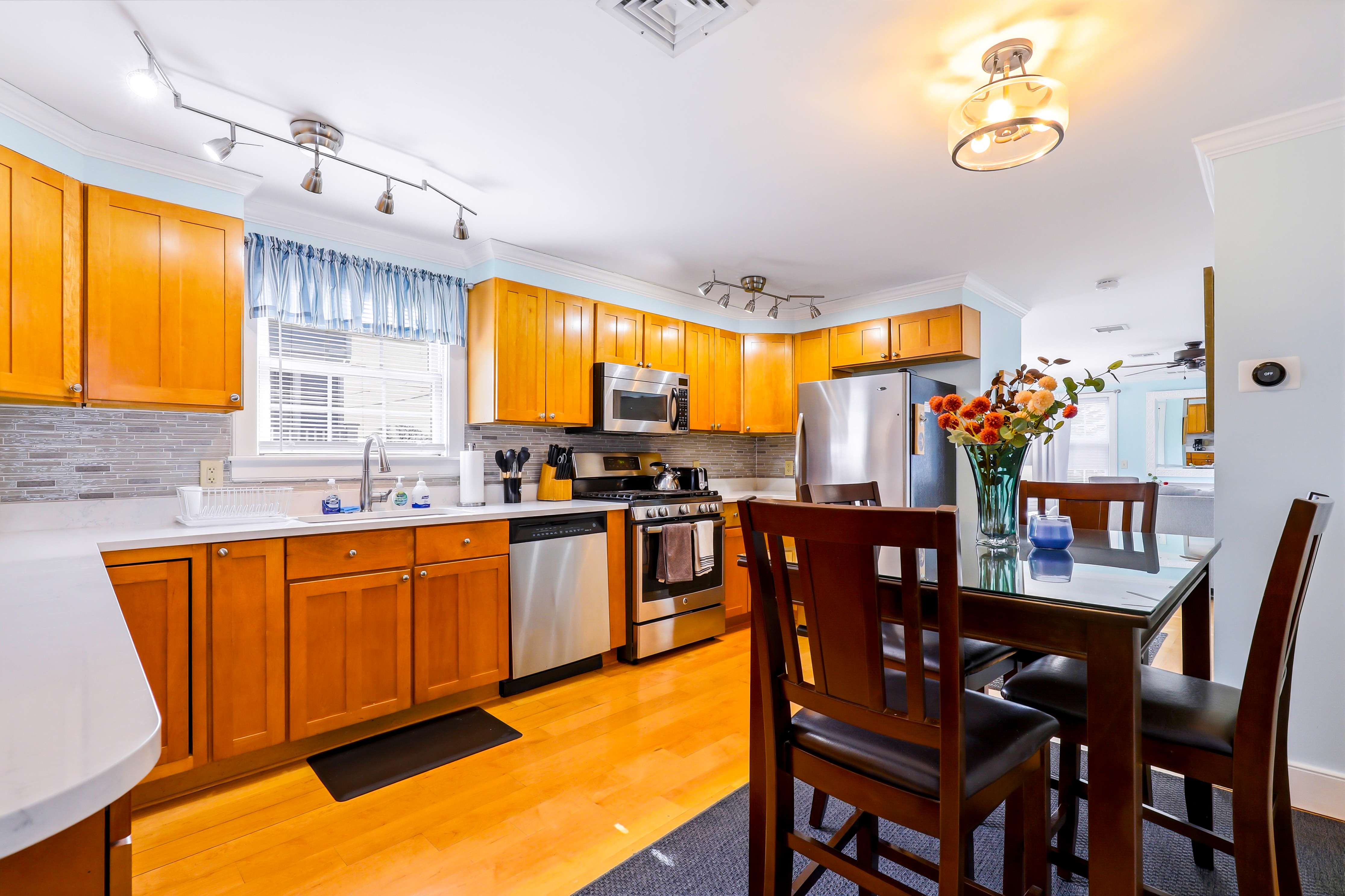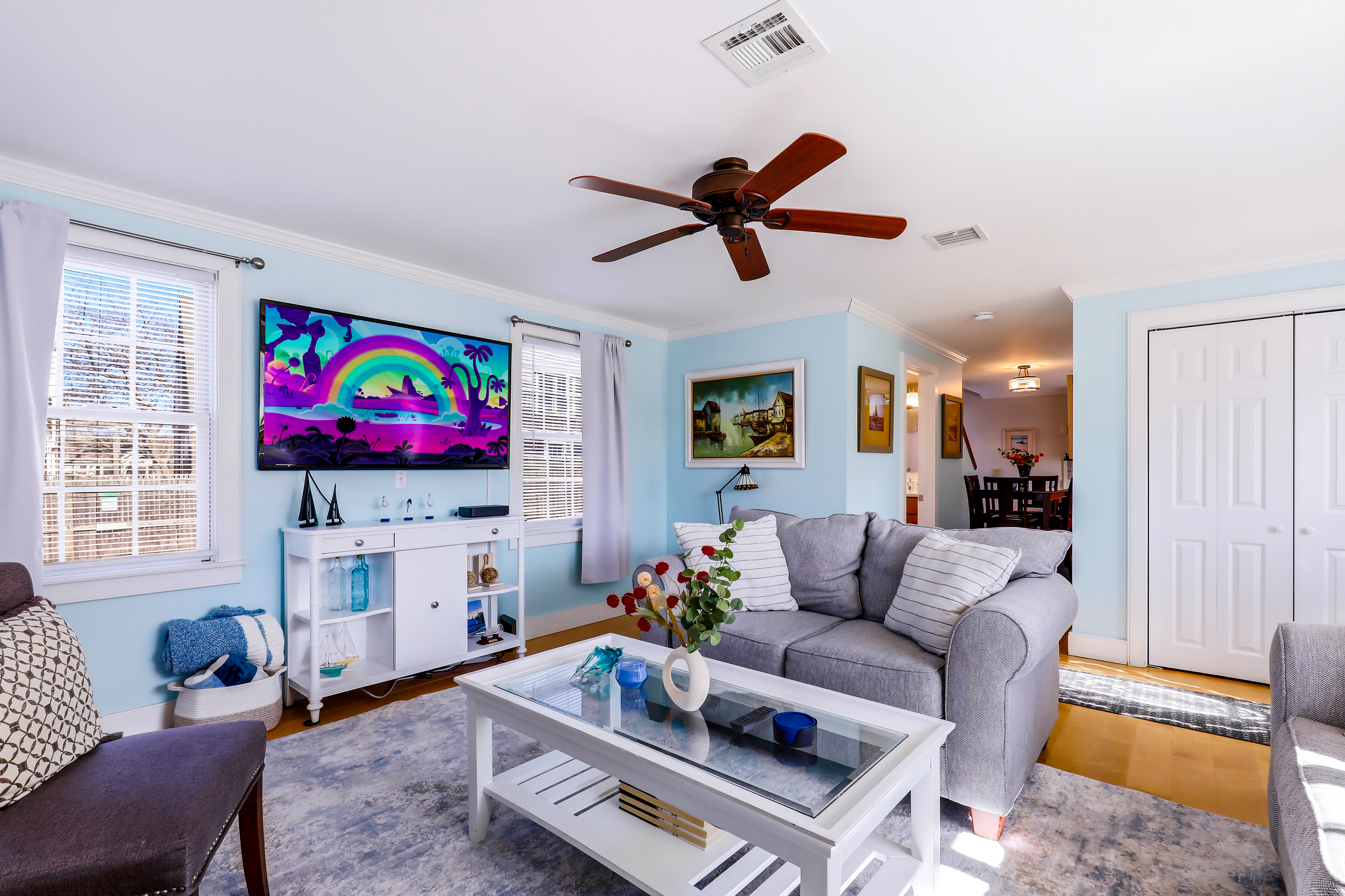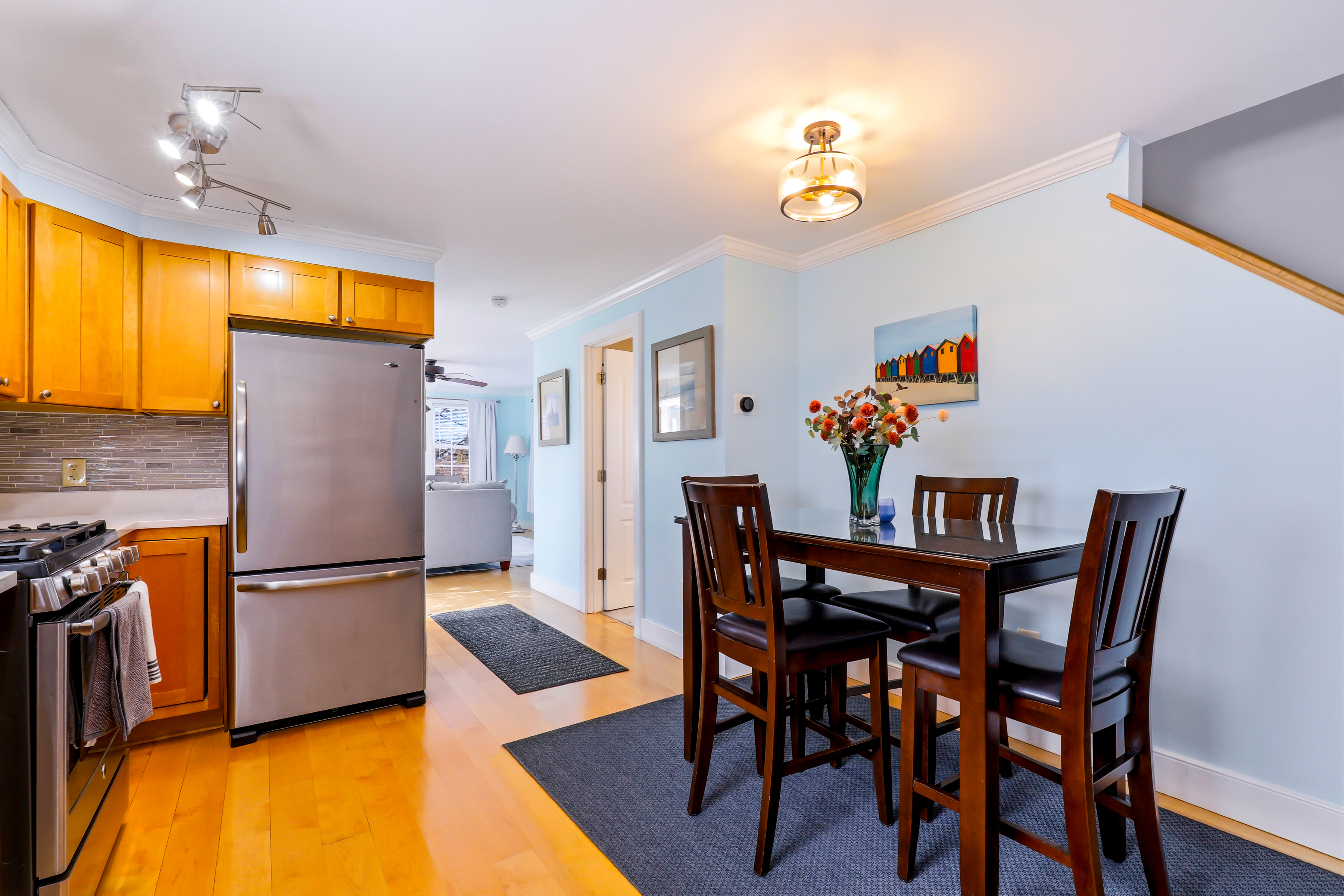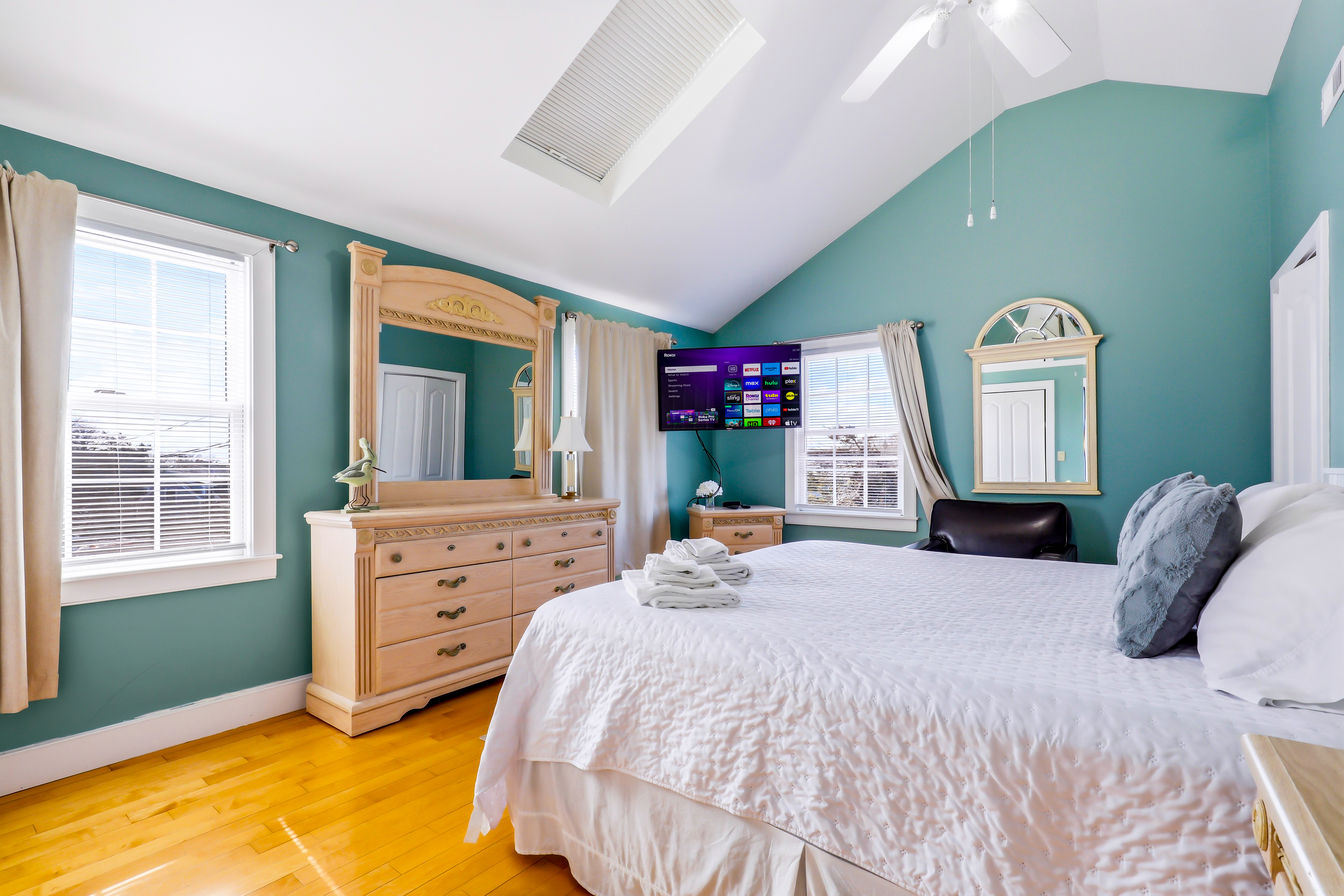 Experience the best of Provincetown from this sun-drenched, two-story luxury condo - just steps from Commercial Street and the Pier, yet tucked away for a peaceful retreat. Enjoy private outdoor spaces, a chef’s kitchen, and dedicated parking, all within walking distance to shops, dining, and the ferry. Key Features ☀ Sleeps 6 - 2 bedrooms (King + Queen) + queen sleeper sofa ☀ 2-story layout with bright skylights and hardwood floors ☀ Prime location - 5-minute walk to Commercial Street & Pepe’s Wharf ☀ Private front porch + secluded patio for relaxing outdoors ☀ Fully stocked chef’s kitchen (including lobster pot) ☀ 2 full bathrooms (main level + second floor)in-unit laundry ☀ Dedicated off-street parking (rare for this location!) ☀ Pet friendly ☀ Fresh pastries from Far Land Provisions right next door ☆☆ BEDROOMS ☆☆ Upstairs, you’ll find two serene and sunlit bedrooms designed for restful nights after a day exploring Provincetown. Skylights fill the space with natural light, while plush mattresses ensure comfort. The primary bedroom features a luxurious king-size bed, creating a true retreat. The second bedroom offers a cozy queen-size bed - perfect for guests or family. Both rooms include AC and their own TVs, giving everyone space to unwind and recharge in comfort. ☆☆ BATHROOMS ☆☆ The home includes two full bathrooms, conveniently located on the main level. It’s fully stocked with body wash, shampoo, conditioner, and all the essentials you need for a comfortable stay. ☆☆ KITCHEN & RELAXING AREAS ☆☆ The open-concept main level is designed for both relaxation and connection. The airy living room features rich hardwood floors and a comfortable setup for movie nights or winding down after a day out. The fully equipped kitchen is ready for anything - from quick breakfasts to full seafood feasts, complete with all cookware and essentials (including a lobster pot). A dining area makes it easy to gather and enjoy meals together, while in-unit laundry adds everyday convenience. ☆☆ OUTSIDE SPACE ☆☆ Enjoy the best of indoor-outdoor living with two private spaces. Sip your morning coffee on the charming front porch - or take a quick step next door to Far Land Provisions for fresh pastries and coffee - then unwind in the evening with drinks on your secluded patio. Leave the car in your dedicated parking spot and explore on foot - everything you need is just steps away. ★☆ Book Today & Let Us Take Care Of You ☆★ Whether you're here for a relaxing getaway or to explore the vibrant energy of Provincetown, this home offers the perfect balance of comfort, location, and style. Book your stay today and enjoy a seamless, memorable experience from start to finish.