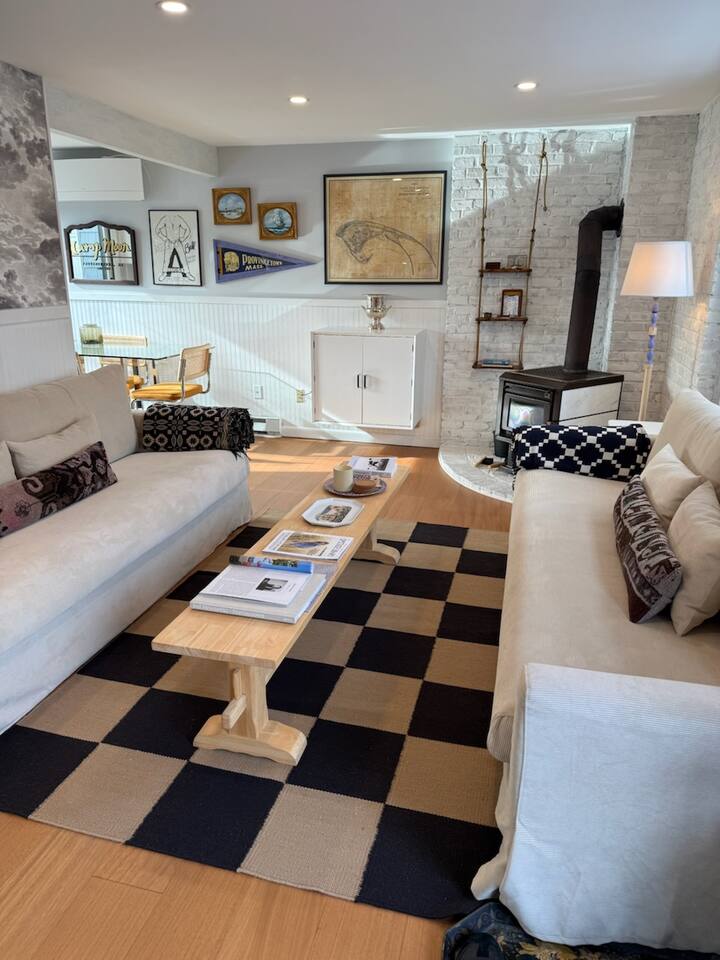 ✨ PROPERTY HIGHLIGHTS ✨ Step into a beautifully renovated home designed with both elegance and functionality in mind. From the warm oak wood floors to the cozy decorative stove, every detail has been thoughtfully considered to create an inviting and comfortable atmosphere. Perfect for extended stays or remote work, our home offers a seamless blend of modern conveniences and classic charm. ✨ KEY DETAILS ✨ ► Two Spacious Bedrooms for Restful Sleep ► Primary Bedroom with Stunning Monument Views ► Fully Renovated Full & Half Baths ► Gleaming Oak Wood Floors Throughout ► Open-Concept Living & Dining Area ► AC Throughout the House for Hot Summer Days ► Cozy Wood-Burning Stove for Chilly Nights ► Smart TV & High-Speed WiFi for Entertainment ► Renovated Kitchen with New Refrigerator & Dishwasher ► In-Unit Washer & Dryer for Convenience ► Exclusive Outdoor Deck for Relaxation & Dining ► Two On-Site Parking Spaces for Easy Access ✨ KEY FEATURES ✨ ☆ Prime West End location within walking distance of top Provincetown attractions ☆ Thoughtfully designed living space with modern updates ☆ Fully equipped kitchen with essential amenities for home-cooked meals ☆ Private outdoor deck for morning coffee or evening drinks ☆ Smart home features and AC/heat split units for year-round comfort ☆ Secure locks and emergency contact information for peace of mind ✨ LOCATION HIGHLIGHTS ✨ ★ 3-Minute Walk to Joe Coffee – Start Your Day Right! ★ 4-Minute Walk to the Boat Slip – Iconic Tea Dance Spot! ★ 5-Minute Walk to Mussel Beach Gym – Stay Active! ★ 5-Minute Walk to Liz's Cafe – Perfect for Brunch! ★ 8-Minute Walk to the center of Commercial Street – Shopping & Nightlife! ★ 17-Minute Walk to MacMillan Pier – Catch the Ferry! We’re located in the vibrant West End, close to shops, restaurants, and entertainment, yet tucked away in a peaceful residential setting. ✨ BEDROOMS ✨ ➔ Primary Bedroom: Wake up to stunning Monument views, unwind in a plush bed with premium linens, and enjoy ample storage space. ➔ Second Bedroom: Spacious and inviting, featuring comfortable bedding and natural light. ✨ BATHROOMS ✨ Enjoy fully renovated bathrooms with stylish tilework, modern fixtures, and ample storage. The convenience of an in-unit washer and dryer makes longer stays effortless. ✨ LIVING / DINING AREA ✨ An open-concept space designed for relaxation and entertaining. The decorative stove adds a cozy touch, while the dining area seamlessly connects to the exclusive outdoor deck, perfect for al fresco dining. ✨ OUTDOOR SPACE ✨ Step outside onto your private deck, an ideal spot to relax with a drink, dine under the stars, or soak in the peaceful surroundings. ✨ BOOK YOUR ESCAPE TODAY ✨ Indulge in the ultimate Provincetown experience with this stunning townhouse. Whether you're here for a weekend getaway or an extended stay, this home offers everything you need for a comfortable and memorable visit. Book your stay today! ✮✮ PARKING INFORMATION ✮✮ We have one dedicated parking spot out front along Winthrop St. There is a second parking space available in the lot to the right of the building. This spot is tandem (meaning parking back-to-back) so you will need to coordinate details with the neighbor with whom we share that tandem spot - usually leaving a note with your name and number on the dashboard usually works well. Nearby public parking is also available.
