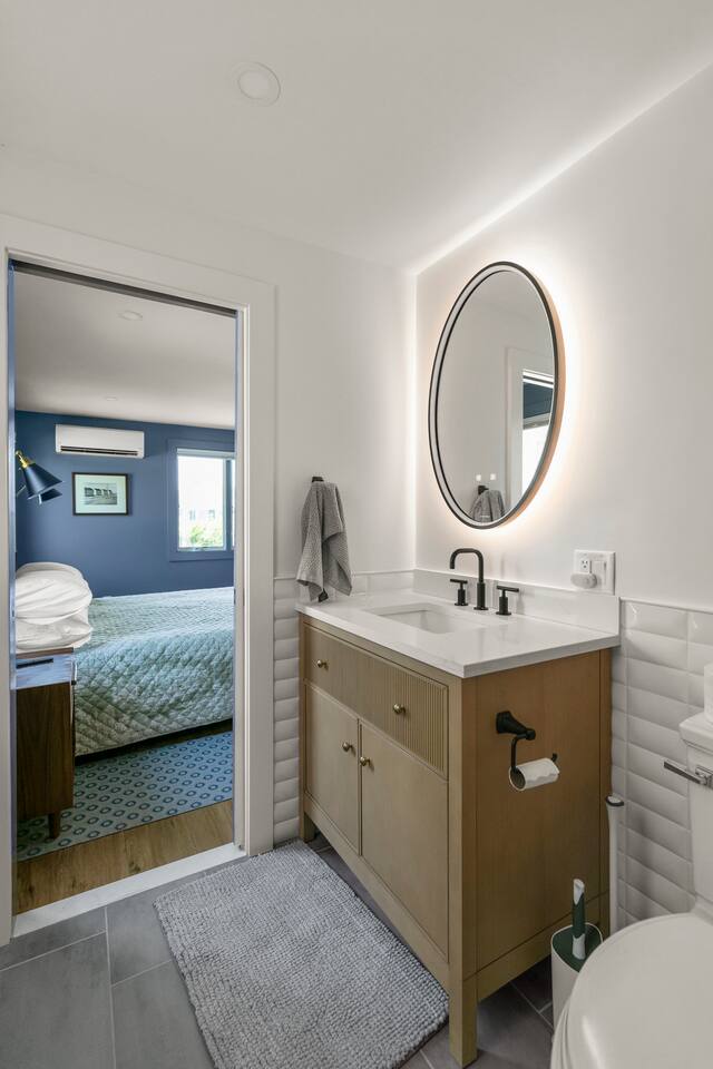 Designed with an upside-down layout to capture the views, the open-concept living, kitchen, and dining area sits upstairs under vaulted ceilings with hardwood floors and a cozy fireplace. Large windows and a sliding glass door flood the space with natural light, leading to your harbor-view deck. Downstairs, you’ll find a serene bedroom with a king bed and a full bath with a modern shower and in-unit washer/dryer—a rare perk in Provincetown! A second deck off the bedroom opens to the lush garden courtyard, offering a private, leafy escape. ✮ ✮ PROPERTY HIGHLIGHTS ✮ ✮ ✔ 1 Comfortable Bedroom – King bed, peaceful vibes, direct access to the garden deck ✔ 1 Full Bathroom – Modern walk-in shower, washer/dryer tucked away in a closet ✔ Dedicated Off-Street Parking – One space included on-site ✔ Open Living Area – Vaulted ceilings, hardwood floors, and a cozy fireplace ✔ Modern Kitchen – Full-sized appliances, breakfast bar, and everything you need to cook ✔ 2 Private Decks – One with harbor views, one overlooking a garden courtyard ✔ Split Air Conditioning + Fast WiFi – Stay cool, connected, and comfortable ✔ Deeded Beach Access – Just steps away for easy bayfront strolls ✮ ✮ LOCATION HIGHLIGHTS ✮ ✮ 🏖 Situated in Provincetown’s most coveted West End. Walk everywhere or relax at home! ✮ Steps to Cape Cod Bay / Ptown Harbor Beach ✮ 3 min walk to Relish Café & Bakery ✮ 6 min walk to The Red Inn & Perry’s Fine Wines ✮ 8 min walk to the Boatslip for Tea Dance ✮ 12 min walk to Spiritus Pizza ✮ 20 min walk to MacMillan Pier ✮ ✮ BEDROOM ✮ ✮ 🛏 Relax in your king-size bedroom, painted in soothing coastal blues with three sunny windows and a ceiling fan. Step outside to your private garden deck for morning coffee or an evening nightcap under the stars. ✮ ✮ LIVING + OUTDOOR AREAS ✮ ✮ Upstairs, the living room is bright and open, with vaulted ceilings, hardwood floors, and a cozy fireplace beneath the wall-mounted Smart TV. Slide open the doors to the upper deck, where rocking chairs invite you to enjoy the harbor view. Downstairs, your second deck overlooks a leafy shared courtyard that feels worlds away from Commercial Street’s bustle. ✮ ✮ PARKING ✮ ✮ Free parking is included for one vehicle in your designated space. ✮ ✮ BOOK YOUR STAY TODAY! ✮ ✮ Whether you’re here for a romantic getaway or a peaceful solo escape, this water-view West End condo delivers location, comfort, and Provincetown charm in one unforgettable package. Your harbor-view retreat awaits!