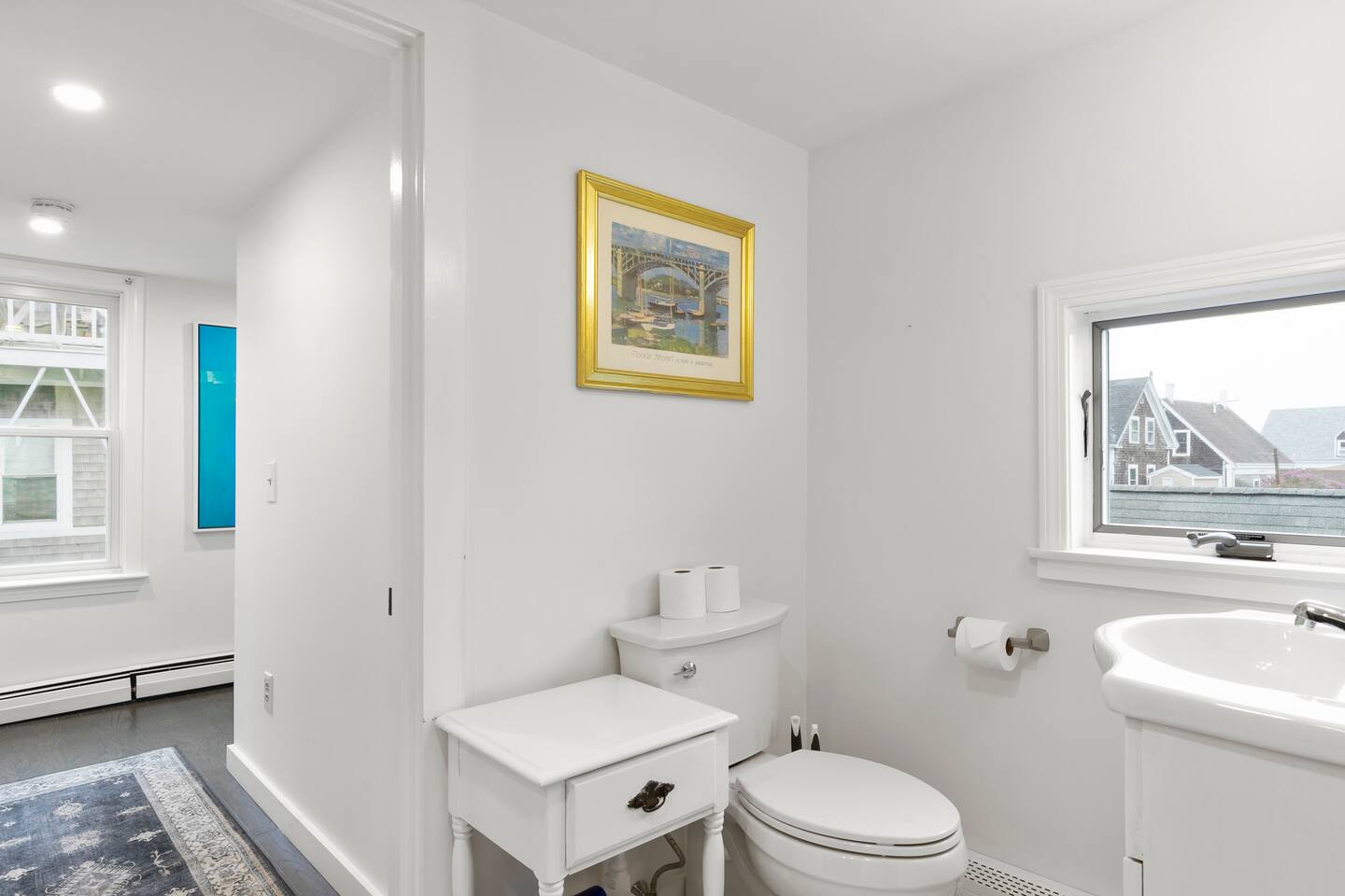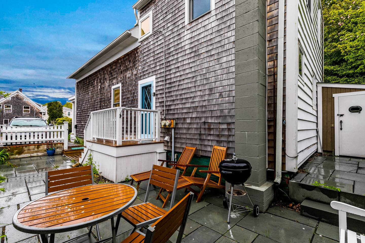 ✨ PROPERTY HIGHLIGHTS ✨ Live like a local with the absolute perfect location in Provincetown. Near everything, but a world away. Step into your coastal haven! Tucked away in the vibrant heart of Provincetown's West End, our delightful home beckons you to unwind and create unforgettable moments. Feel the warmth of hospitality as you enter, where every corner whispers tales of comfort and relaxation. Embrace the essence of Provincetown, where every street holds secrets of the past and promises of new adventures. ✨ KEY DETAILS ✨ ► 2 Queen Beds, 2 Twin Beds, Sleeper sofa ► Washer / Dryer ► Fully equipped modern kitchen ► 2 deeded outdoor areas ► Parking ► Dog-friendly ► Workspace with desk, chair, monitor, and printer ✨ KEY FEATURES ✨ ☀ Conveniently located within walking distance to all Provincetown attractions ☀ Comfortable and well-appointed living spaces for relaxation and enjoyment ☀ Thoughtfully stocked kitchen with essential amenities for your culinary adventures ☀ Tranquil outdoor spaces including a patio and front porch for al fresco dining and relaxation ☀ Modern conveniences such as WiFi, Smart TV, and air conditioning for your comfort ☀ Secure door locks and emergency contact information for your peace of mind ✨ LOCATION HIGHLIGHTS ✨ ✮ 1-Minute Walk to Mussel Beach – Pump Up! ✮ 2-Minute Walk to Liz's Cafe – Let's Do Brunch! ✮ 2-Minute Walk to Ptown Bikes – Go for a Ride! ✮ 5-Minute Walk to Boatslip – Time for Tea Dance! ✮ 6-Minute Walk to Victor's – Perfect for an Upscale Dining Date Night! ✮ 6-Minute Walk to Joe Coffee – Morning Buzz! ✮ 8-Minute Walk to Sal's Place – Discover a Hidden Dinner Spot! ✮ 8-Minute Walk home from Spiritus Pizza – IYKYK! ✮ 11-Minute Walk to Crown & Anchor – Party Up! ✮ 17-Minute Walk to the Ferry – Leave Your Car Home! We’re minutes from a wide array of restaurants, shops, and activities. Just three minutes from Bradford St. and one additional block to Commercial St. ✨ BEDROOMS ✨ Three bedrooms are located upstairs. ➔ Front bedroom has a queen bed ➔ Center bedroom has two twin beds and a work area with desk, chair, monitor, and printer ➔ Back bedroom has a queen bed. ➔ We also have a sleeper sofa downstairs. Our home sleeps 6 adults comfortably in beds. If you're planning to use the pullout and invite extra guests, please let us know in advance. Additional guest charges apply. Front and back bedrooms have window unit AC which are installed at the end of May. Heat is throughout controlled by the thermostat in the center bedroom. Our bedrooms do not have overhead lighting, but a lamp is in each room. Please note that the two bedrooms at the far ends of the house have closed doors. The bedroom in the middle with two twin beds has a pocket door that closes to the bathroom on one side, and a bifold door on the other that leads to a landing and downstairs. There is also a pull-out couch downstairs in case guests wish to use that instead. ✨ BATHROOMS ✨ Our two fully renovated bathrooms give plenty of space for your group to get read and look fabulous! The main bathroom is downstairs, featuring a double vanity and tiled shower. Upstairs is the second bathroom, off the center bedroom and back hallway. ✨ OUTDOOR SPACE ✨ Step outside and immerse yourself in the beauty of nature! Our outdoor spaces provide the perfect setting for enjoying the coastal breeze and soaking up the sun. Whether you're cooking out on the patio or simply unwinding on the front porch, you'll find tranquility and serenity right outside your door. There is a covered front porch with two chairs, an excellent place for morning coffee or an afternoon drink. An exclusive use patio is on the side of the home with a table and chairs to enjoy an outdoor lunch and a couple lounge chairs. ✨ LIVING AREA ✨ Step inside and feel right at home! Our cozy living area is the perfect place to unwind after a day of exploration. Sink into the plush sofas, catch up on your favorite shows with the Roku-enabled TV, or simply enjoy the company of loved ones in this inviting space. ✨ DOG-FRIENDLY ✨ We understand that your furry friends are part of your family. Our home is a dog-friendly retreat, so feel free to bring your up to two dogs under 40 pounds each. Please let us know in advance if your furry friend will be joining you on vacation. An additional pet fee applies. Please pick up after your pet so the next guests can enjoy their time! ✨ BOOK YOUR ESCAPE TODAY ✨ Escape to Provincetown and create memories that will last a lifetime! Book your stay at our charming coastal retreat and experience the magic of this historic town. We can't wait to welcome you to your home away from home! ✮✮ PARKING INFORMATION ✮✮ Like many Provincetown parking spots, ours is tight and likely won’t fit large trucks or large SUVs as they may hang out the back end of the parking pad. Think Jeep Cherokee and smaller. One reasonably-sized vehicle will fit no problem. Just please make sure you're parking toward the left side of the lot nearest our building, and remember to leave room for our full-time neighbor on the far right (he has a red pickup truck) to ensure a smooth parking experience for everyone. For additional parking, we're just a block from the Montello-Bradford Parking Lot, which has an additional fee.